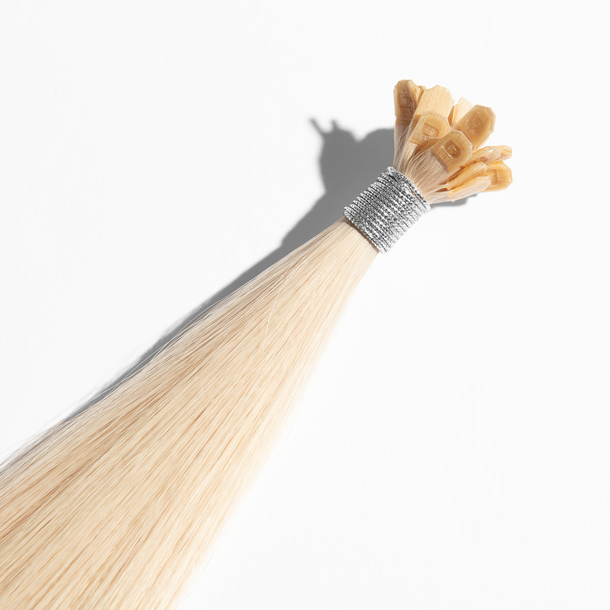 Drop Dead extensions will last 12+ months with proper care. A complimentary care guide is included inside each pack to help your client achieve the longest life of the extensions. It is recommended to give this care guide to your client and review it with them regularly. Please consult with your client to reach out to you for any concerns. Ensure your client does not use any products containing protein or keratin, including vegan variations, as protein overload will block the cuticle from absorbing moisture and the hair will be prone to damage and breakage. The lightest colors (10N, 10V, 10S) are very processed and may result in a shorter lifespan of 6 to 9 months. Although our production team grades the hair to last for 2-3 years, we prefer to instead give more true to life expectations. Move-ups and maintenance should be performed every 6-12 weeks, depending on stylist preference.