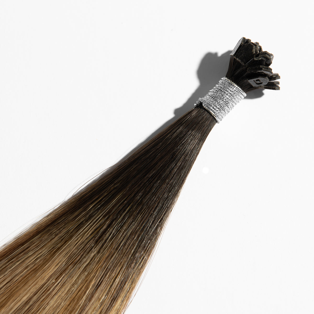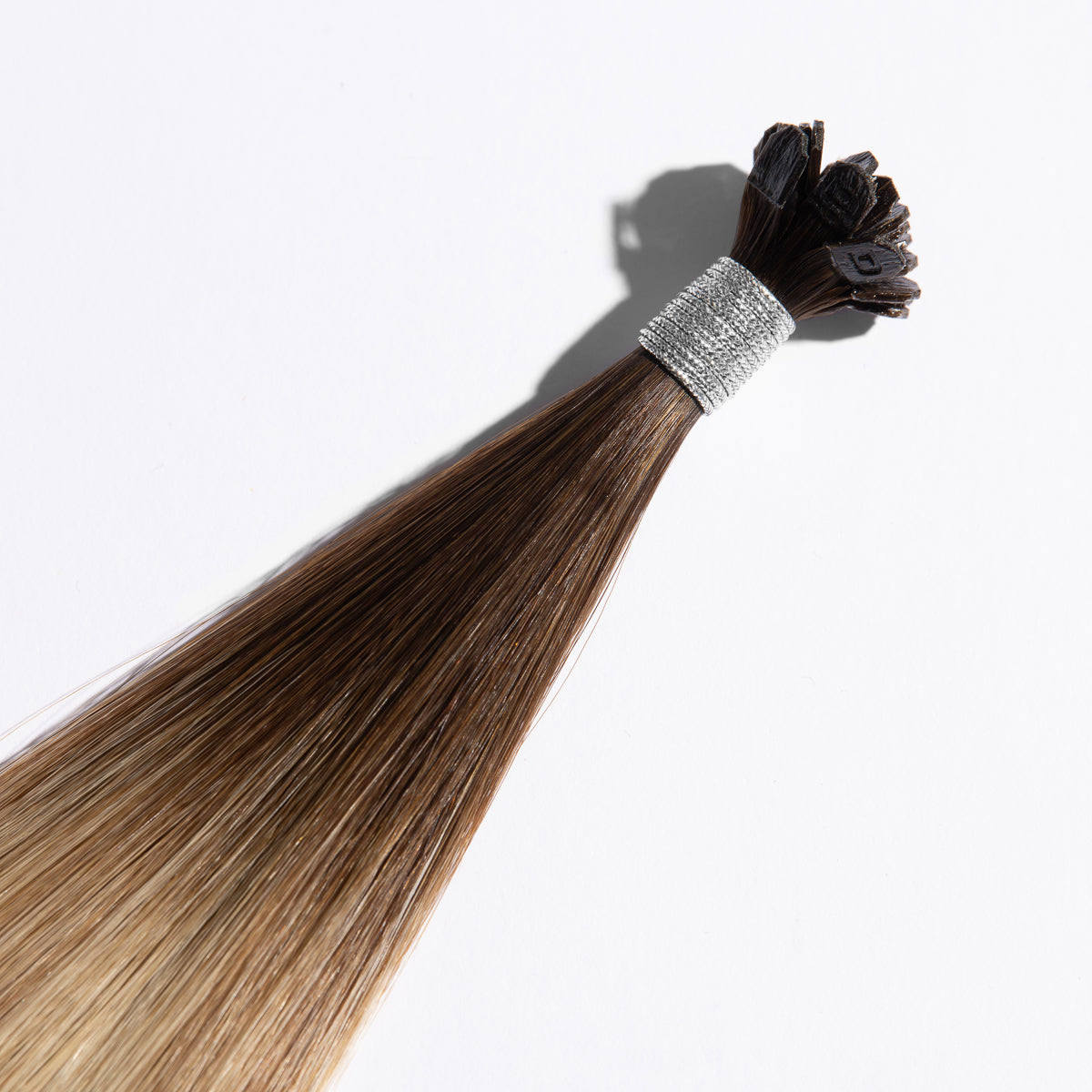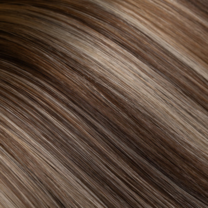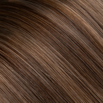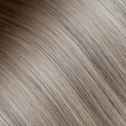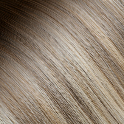 Balayage indicates that the bundle contains a root color that is seamlessly melted into one, two, or three other color combinations. Each color combination is a 10mm wide across the weft, giving a highlight/lowlight look for dimension, sometimes also considered a piano.
