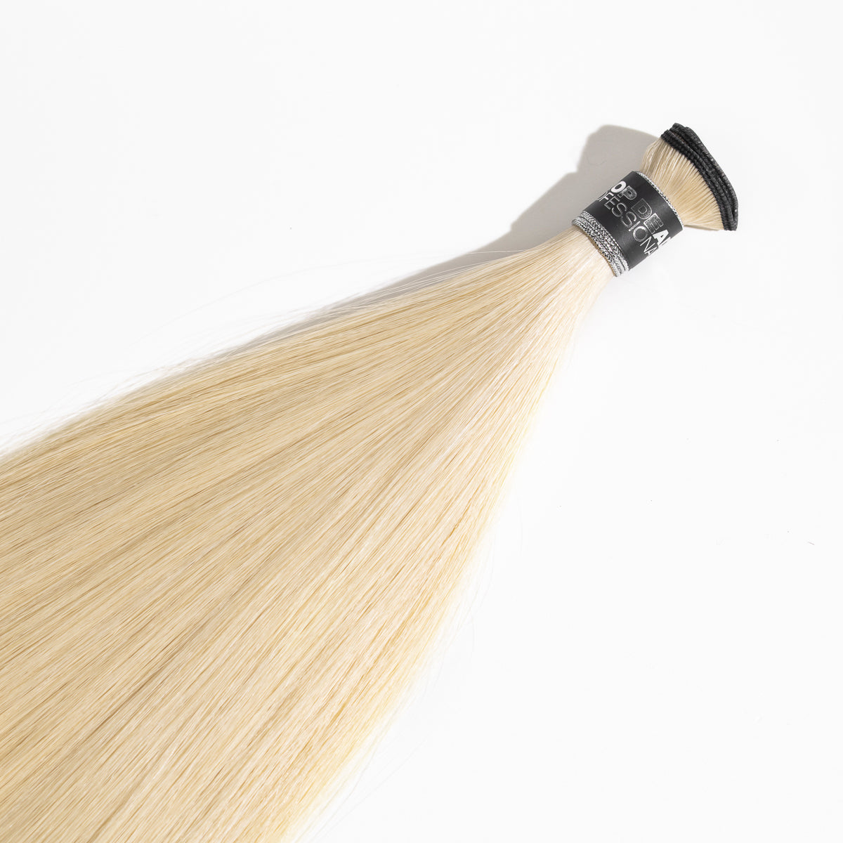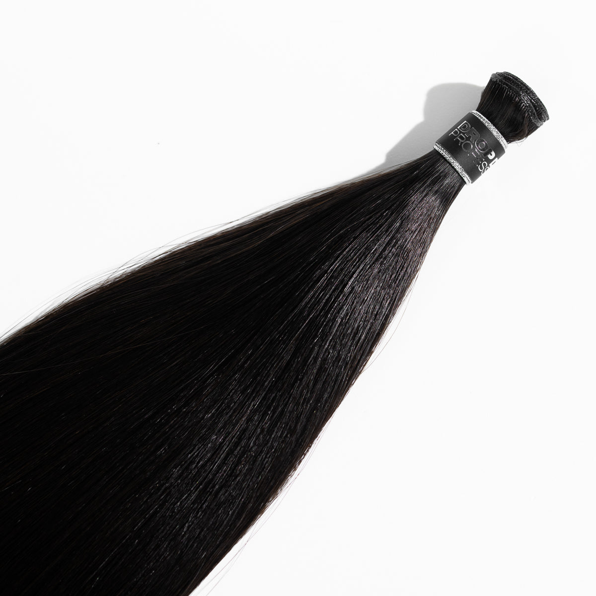 Seam shade indicates that the seam color of the weft is different than the hair color itself. Because many artists custom color blonde hair to other colors, and the polyurethane seam of the SuperWeft does not easily absorb color, we created a Seam Shade, which means the seam is pre-colored. The number following the (SS) indicates the color of the polyurethane seam, while the number and letter after the dash indicate the color and tone of the hair.