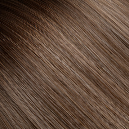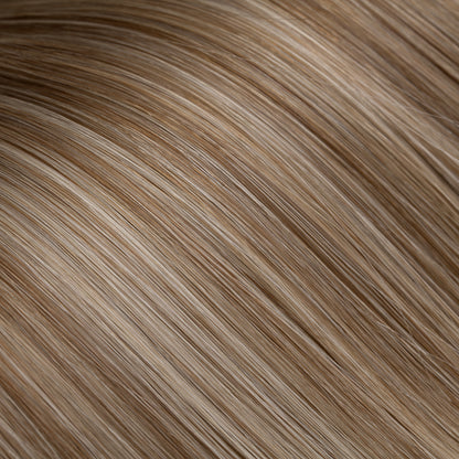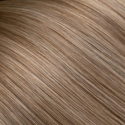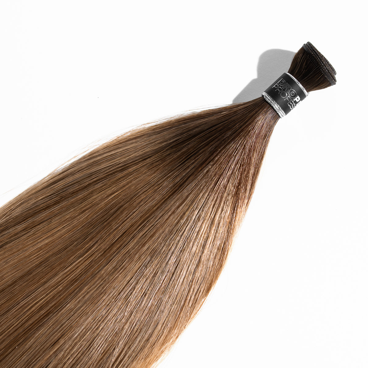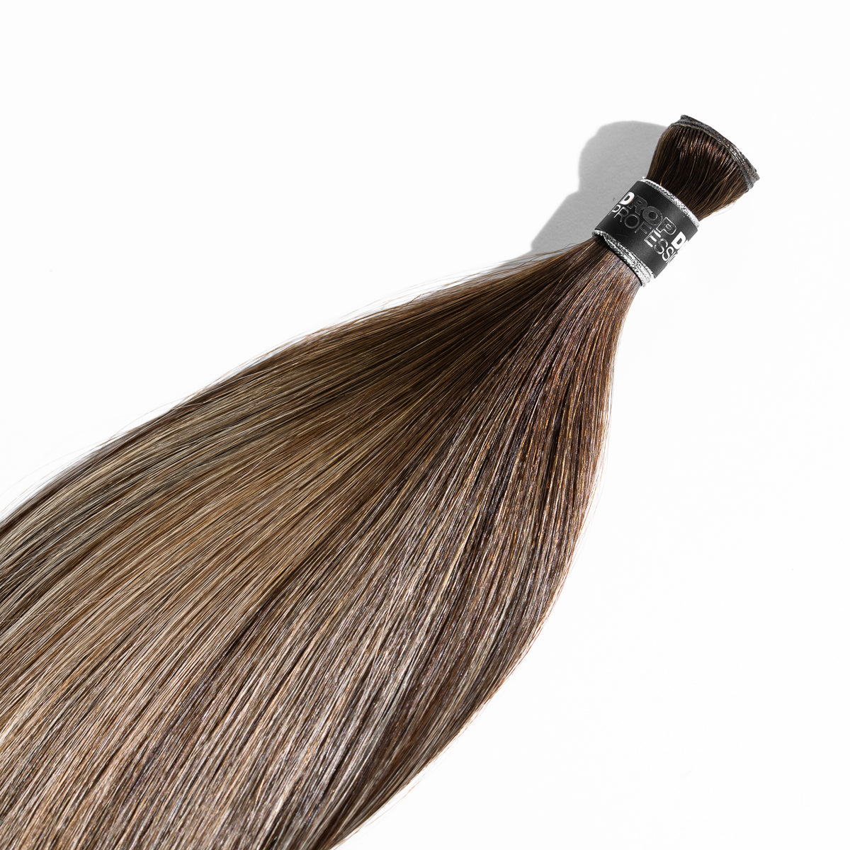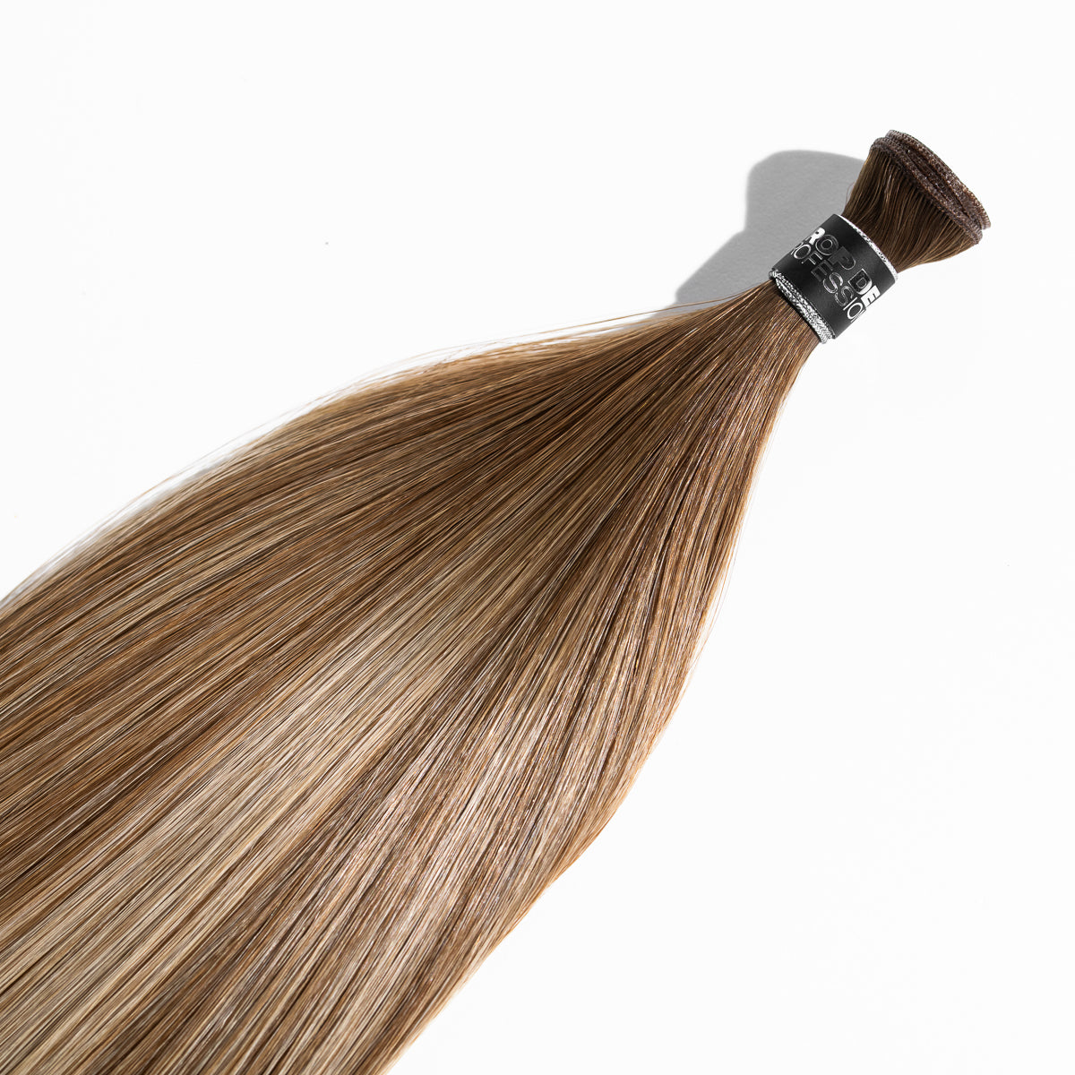 Balayage indicates that the bundle contains a root color that is seamlessly melted into one, two, or three other color combinations. Each color combination is a 10mm wide across the weft, giving a highlight/lowlight look for dimension, sometimes also considered a piano.